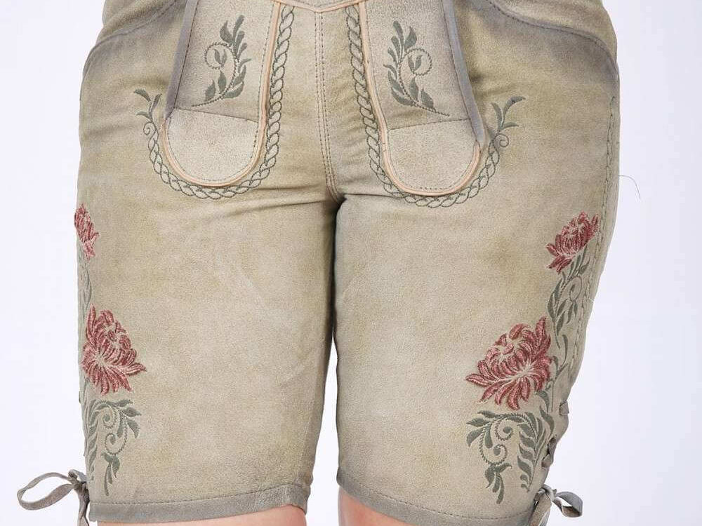 Vintage-Oliv-Beige Damen-Lederhose mit antiker Rosenstickerei
