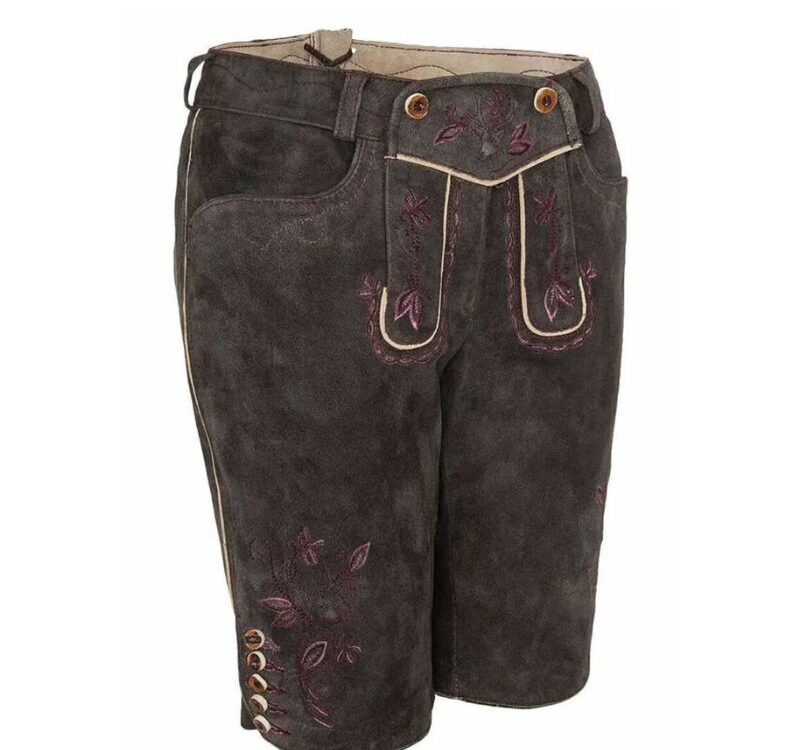 Pflaumenbraune Damen-Lederhose – Traditioneller Bayerischer Stil