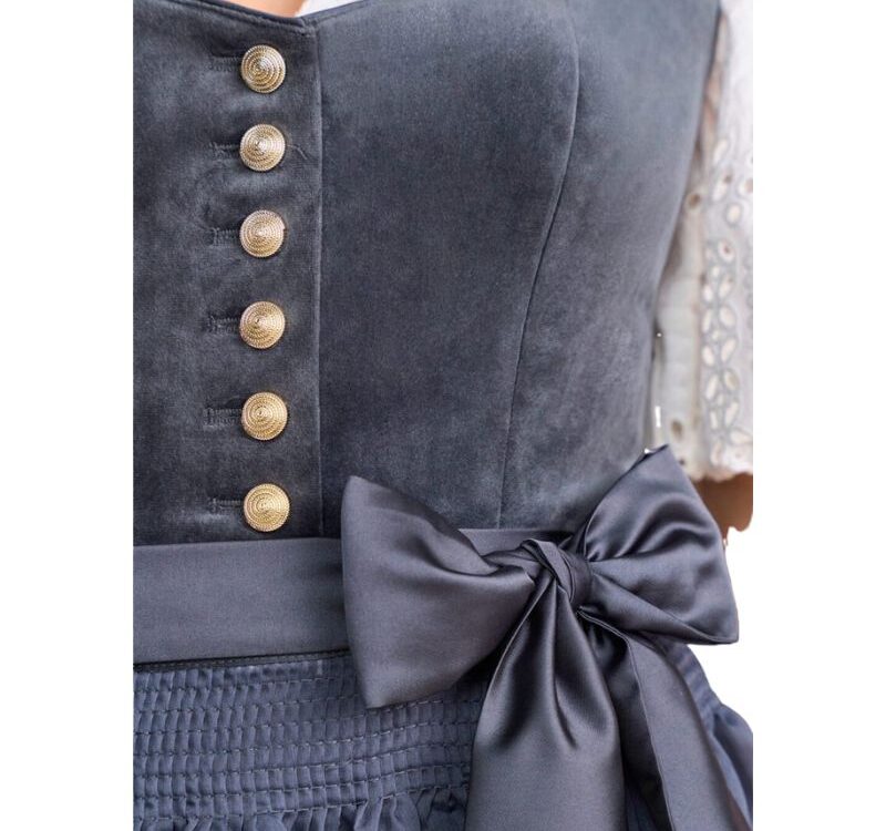Darya – Sturmblaues Samt-Dirndl in Midilänge mit Knopfleiste