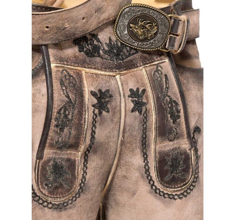 Vespucci Rustik-Braune Ziegenwildleder Lederhose – Bayerischer Stil