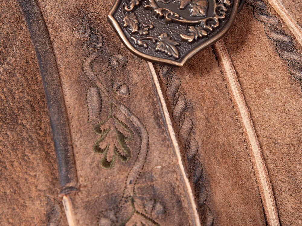 Rustikale Eichenlaub-Stickerei Lederhose – Wildleder-Shorts