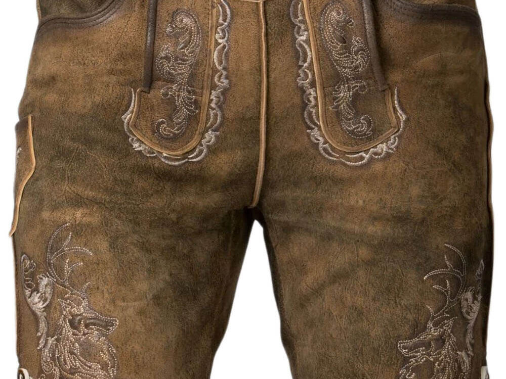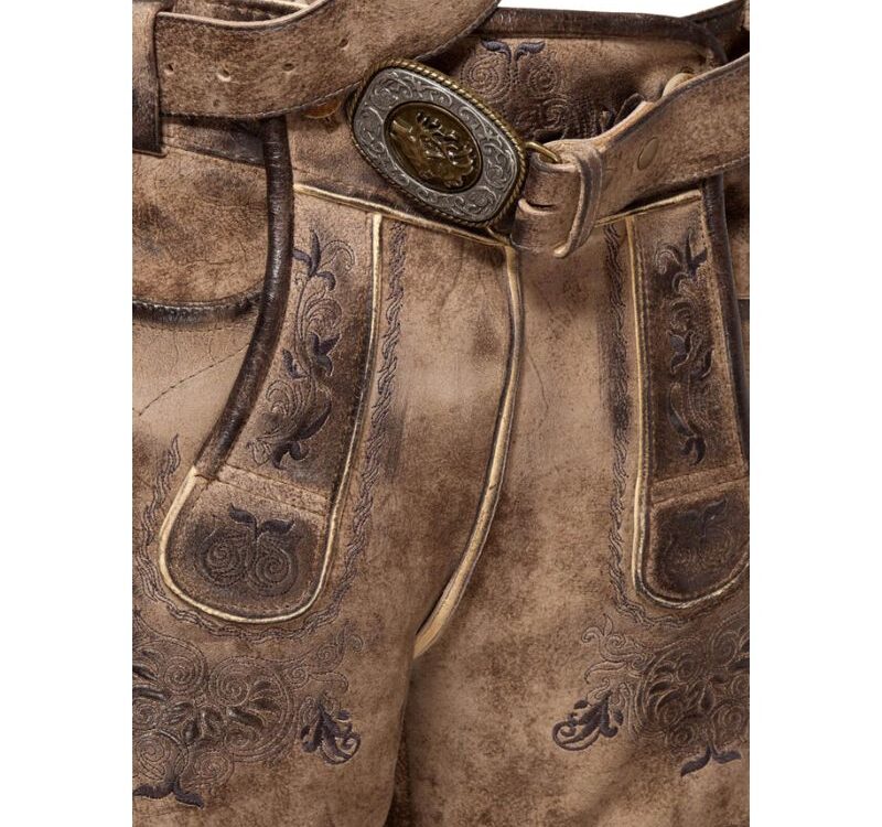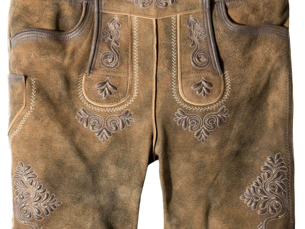 Waldbraune Velourslederhose mit bayerischer Stickerei