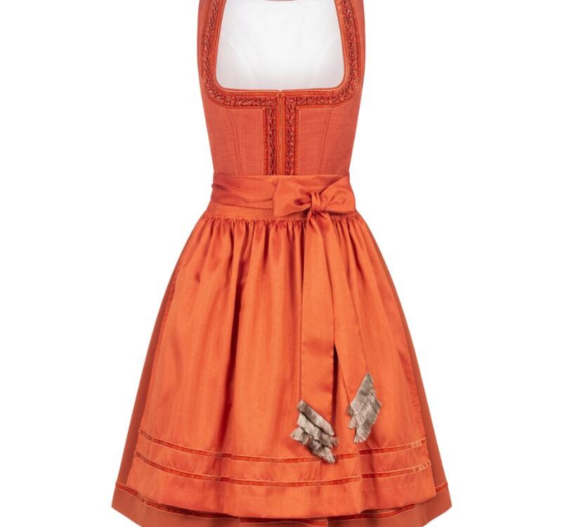Eilfeld – Mididirndl in Bernsteinorange mit Flammenstickerei